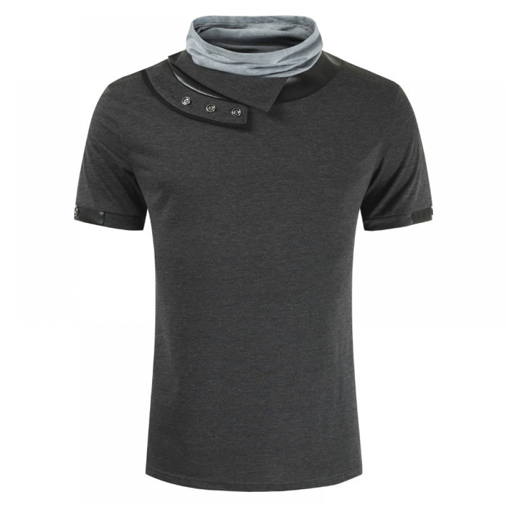 New Style Men's Personality Sports T-Shirt Fashion Leather High Pile Collar Short-Sleeved T-Shirts
