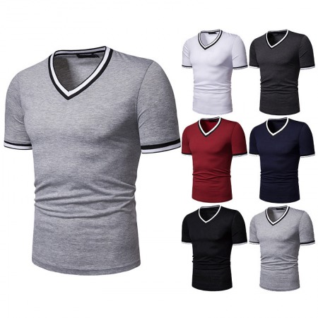 New Summer Thin High Stretch Men's V-Neck Short-Sleeved T-Shirt